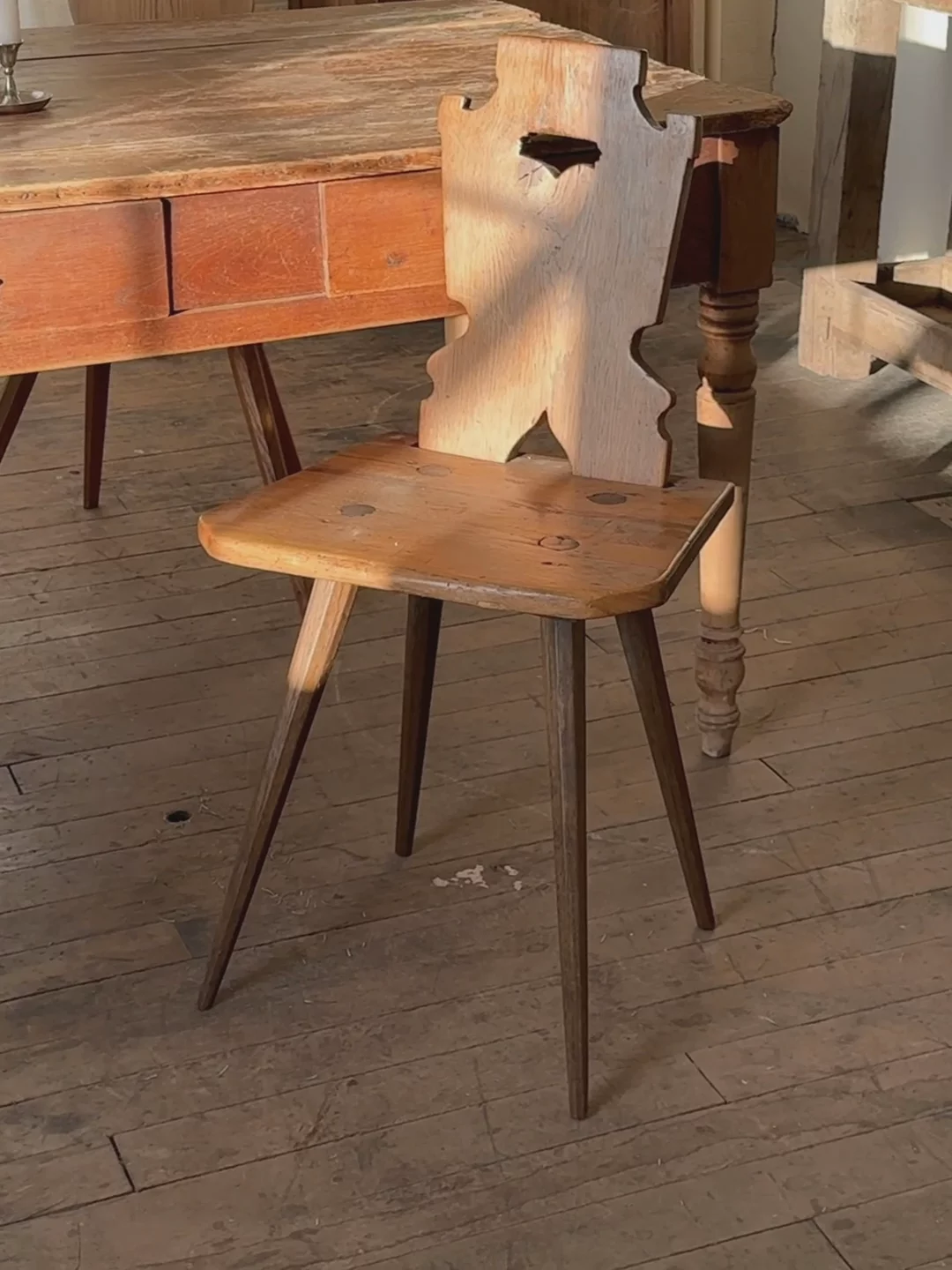 This 19th-century Brutalist chair has that certain je ne sais quoi, don't you think? Found in Avignon, but originating from Northern France, this chair showcases a bold, angular backrest with intricate cutouts that reflect the thoughtful design of its time. Style it as a striking accent chair against any bare wall, or as a part of your mismatched dining room chair collection.