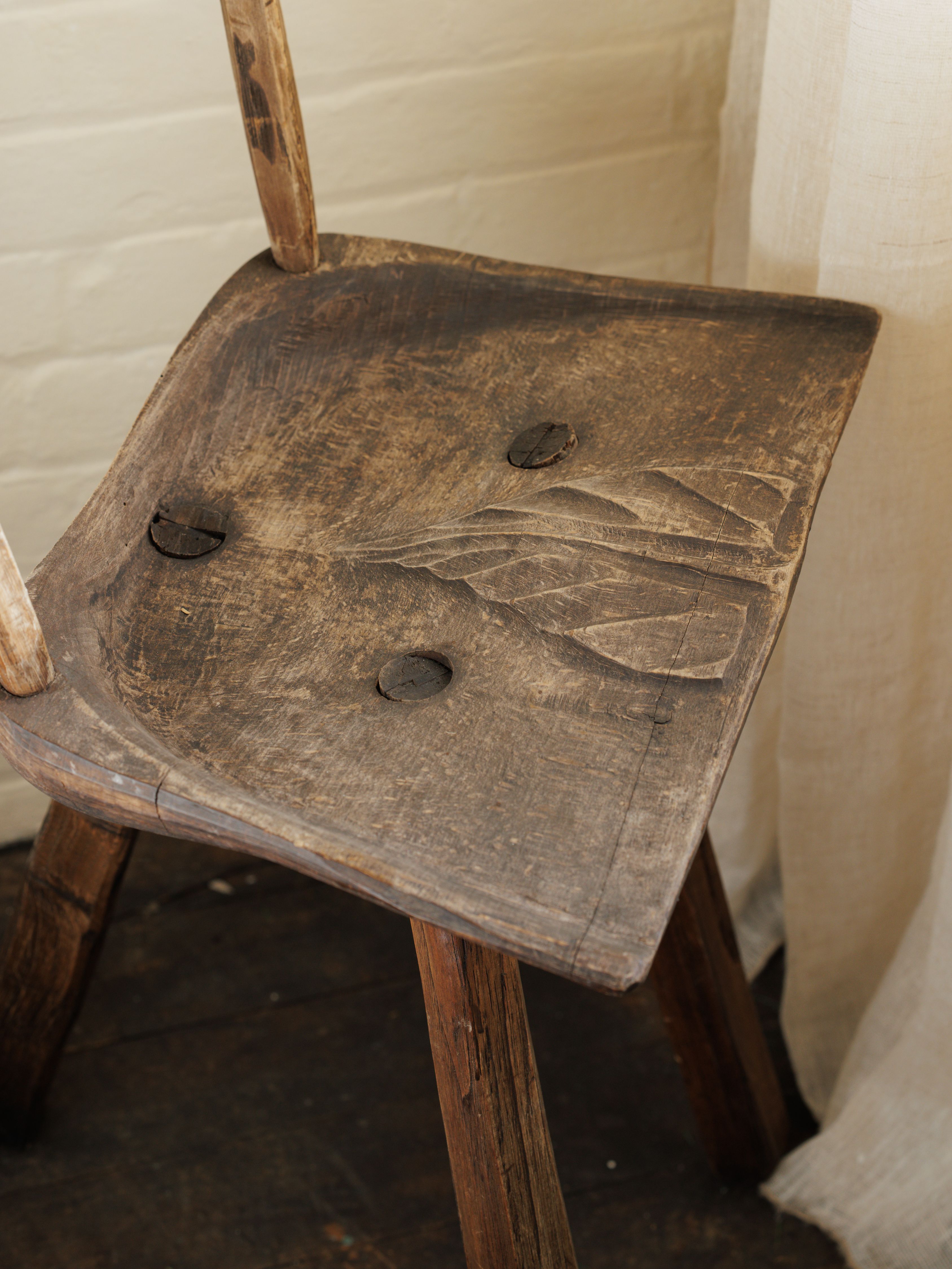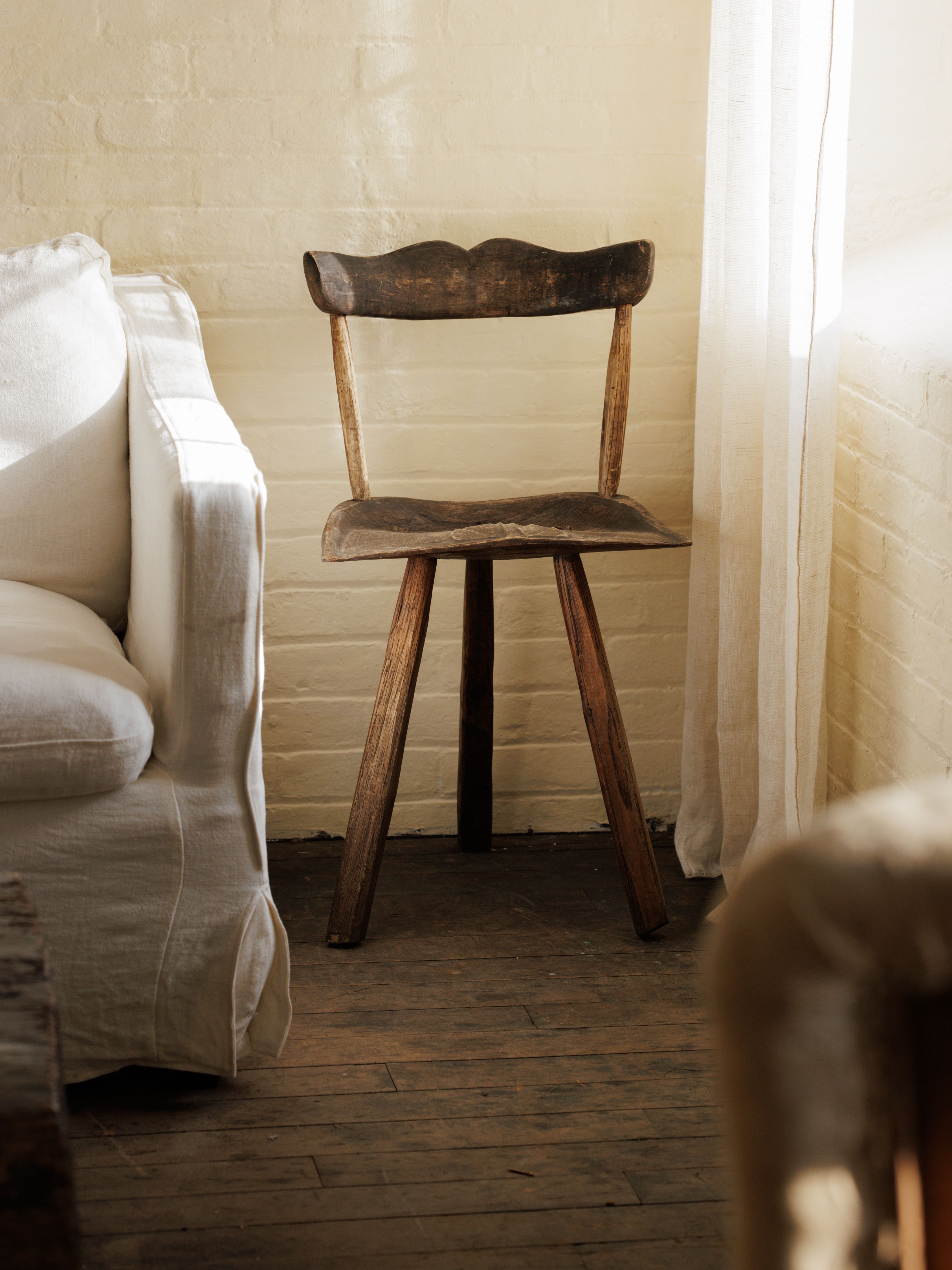 This primitive French chair, discovered near Lyon, is the kind of piece you’ll never see twice. With its beautifully worn wood and sculptural silhouette, it’s as raw as it is refined—a true jaw-dropper. Sylvie loves this styled in a reading nook, as a statement in a hallway, or simply leaning against a wall where it can shine. One of a kind doesn’t even begin to describe it—this chair is pure magic.