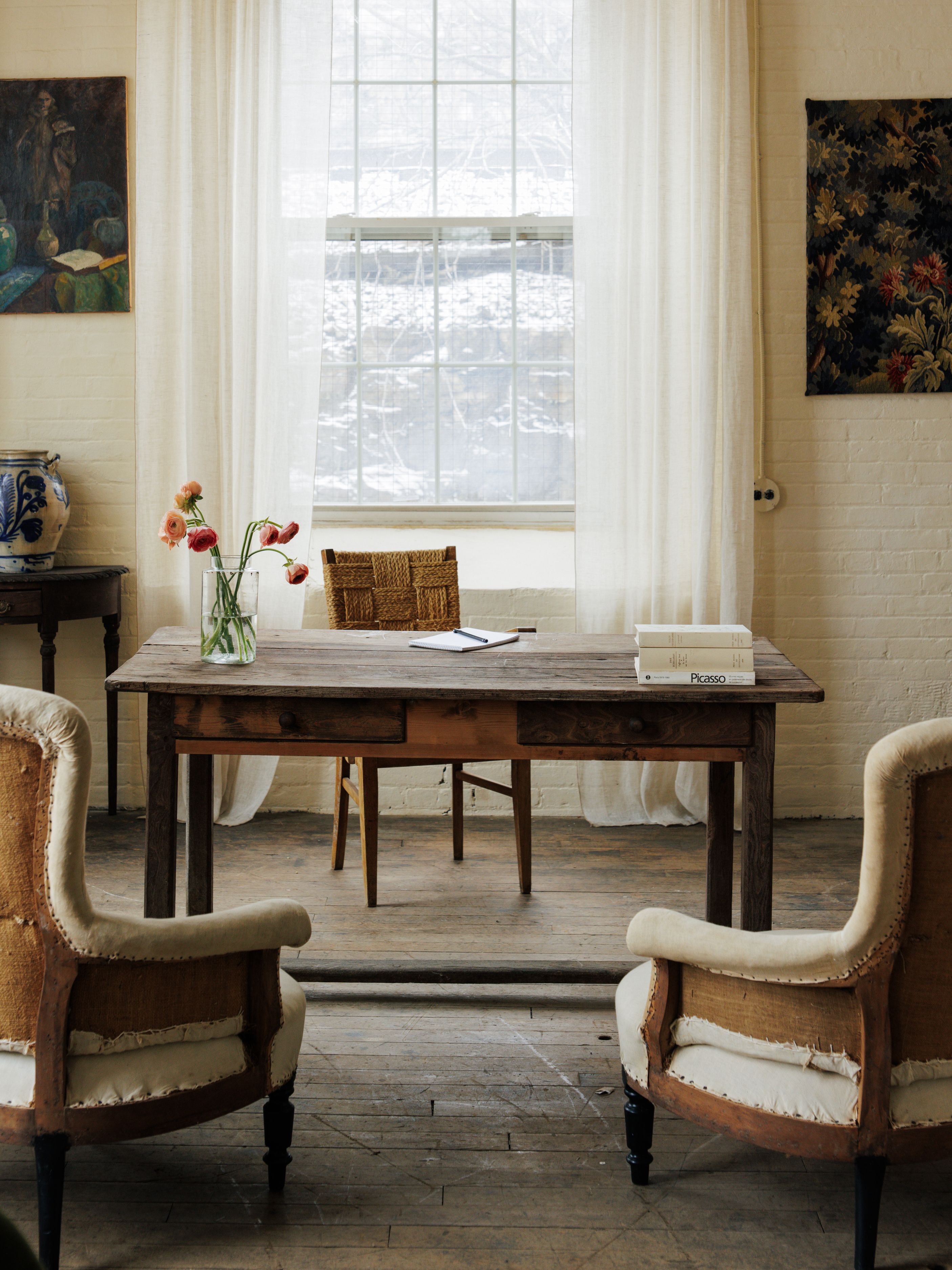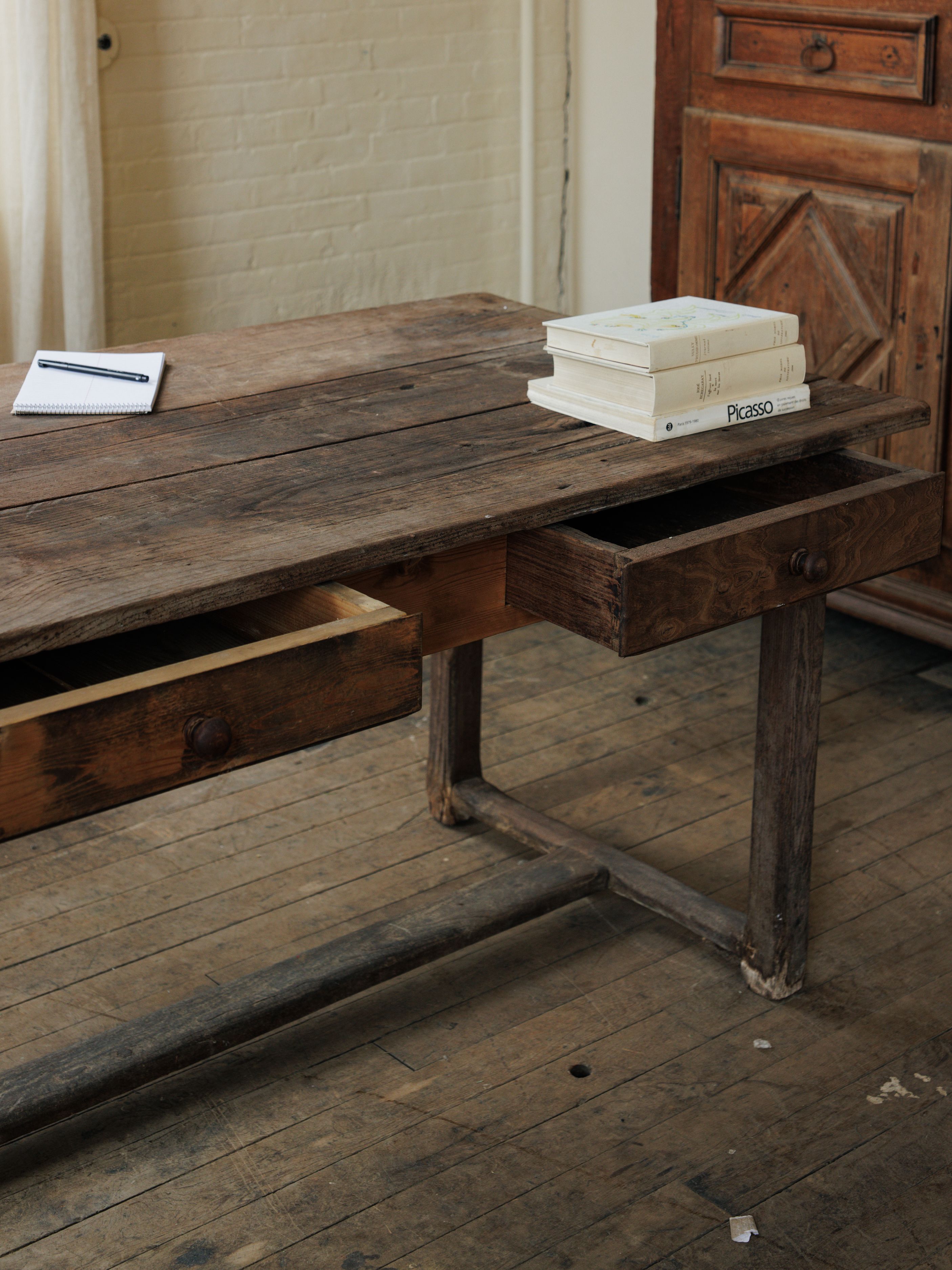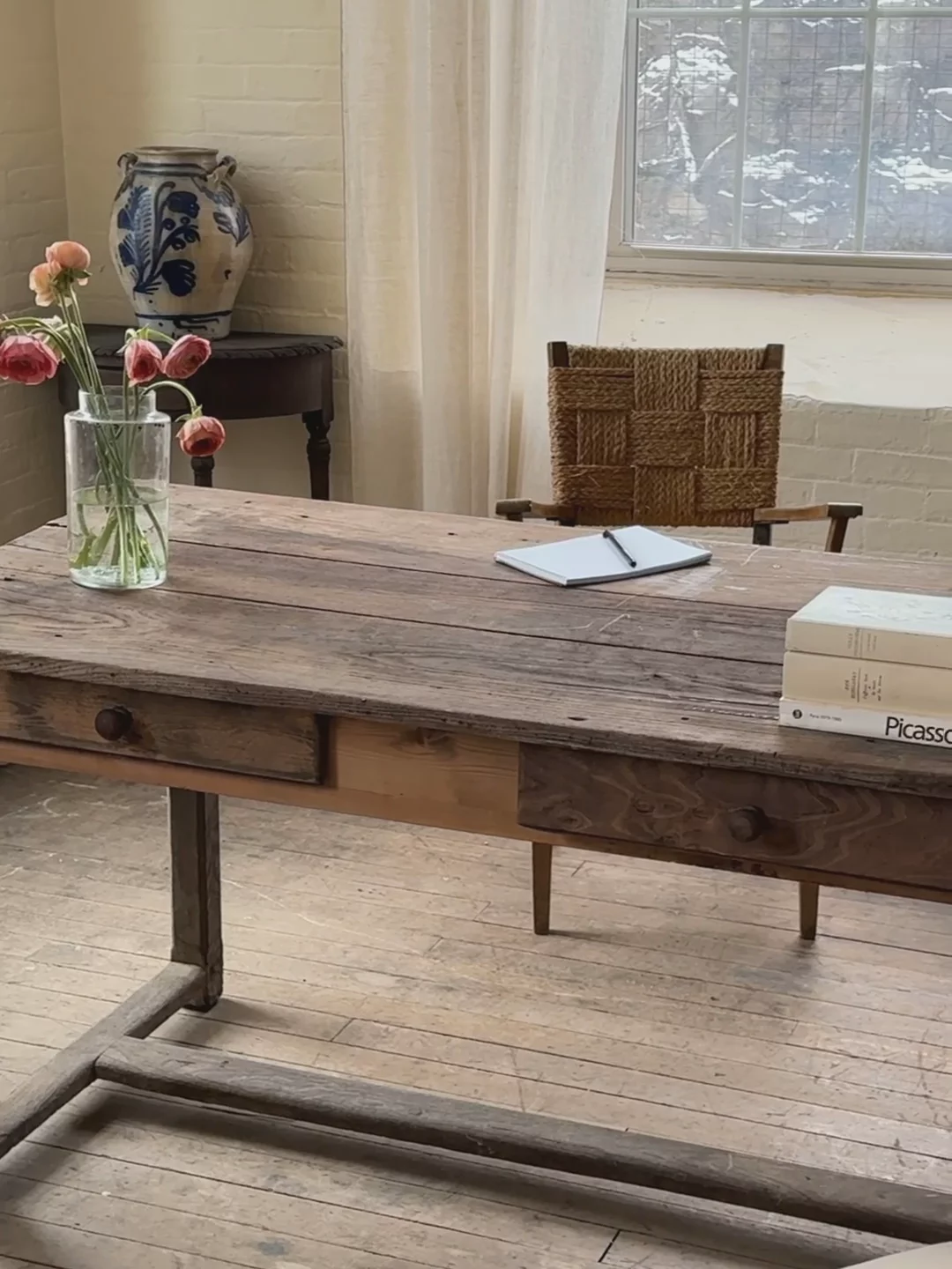 This 19th-century French farm table, discovered in a farmhouse near Avignon, has that perfectly imperfect look we love. With two drawers and a beautifully worn surface, it’s the kind of piece that feels lived-in and full of history.