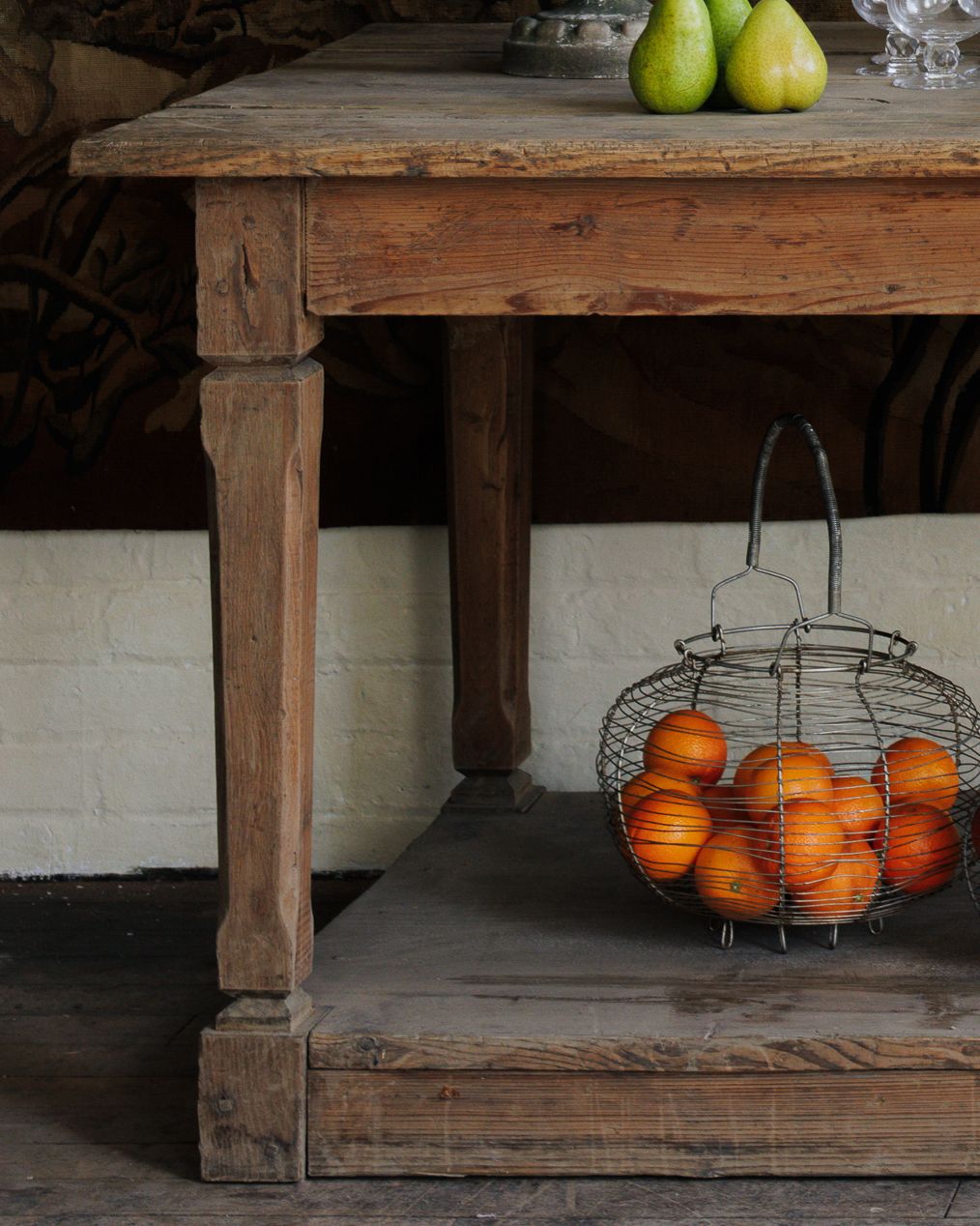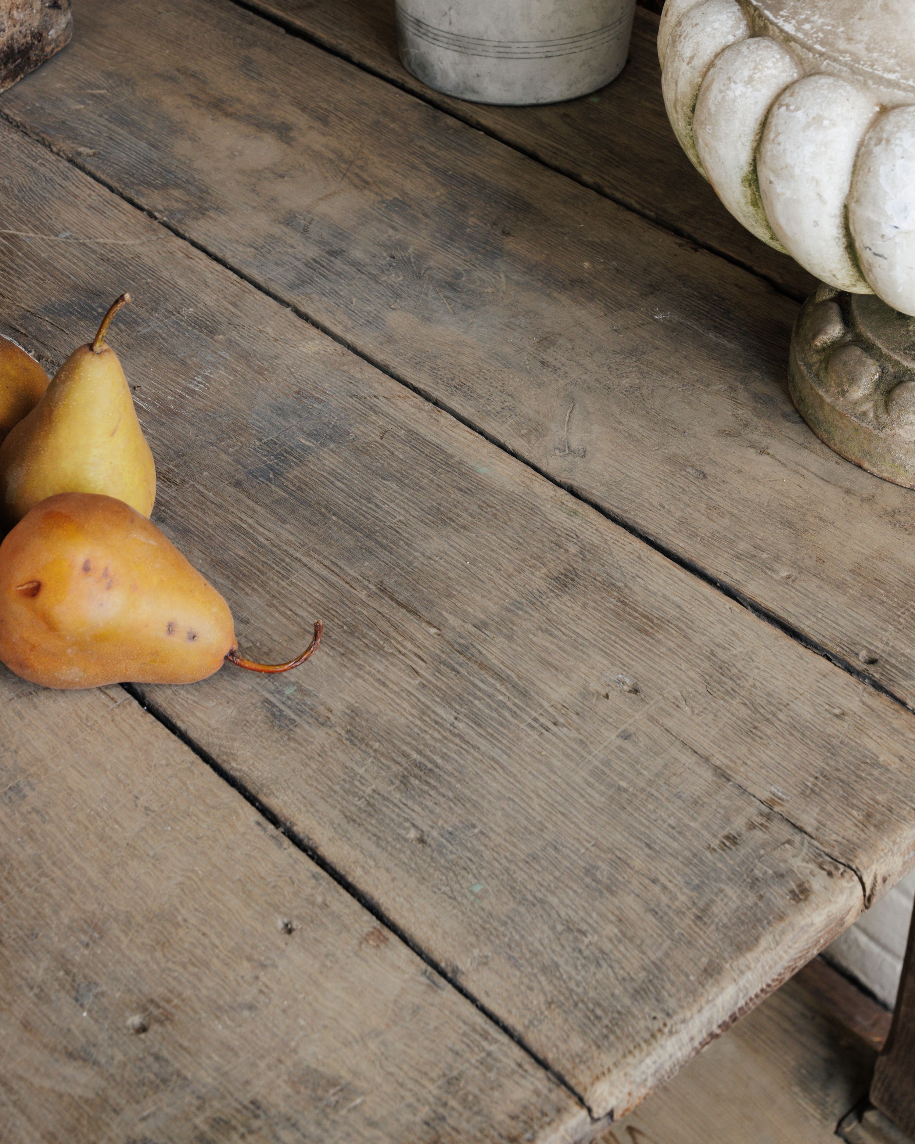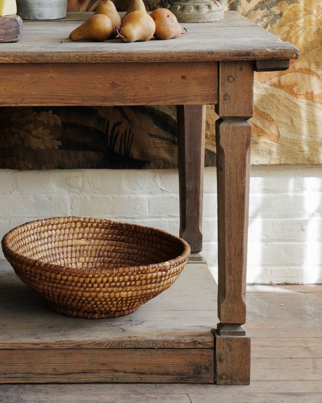 Once used in the dressmaking workshops of Catalonia, Spain, this 19th-century draper’s table has lived a storied life, eventually making its way to Béziers, where we discovered it. Designed with a wide work surface and a unique lower platform, it offers both form and function. Sylvie loves this show stopper as a console table or kitchen table with open storage for pots, pans and dry goods.