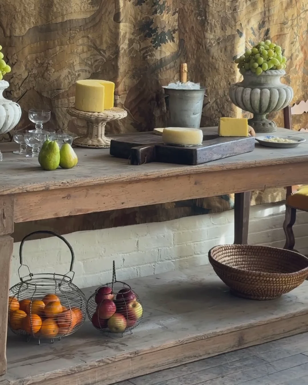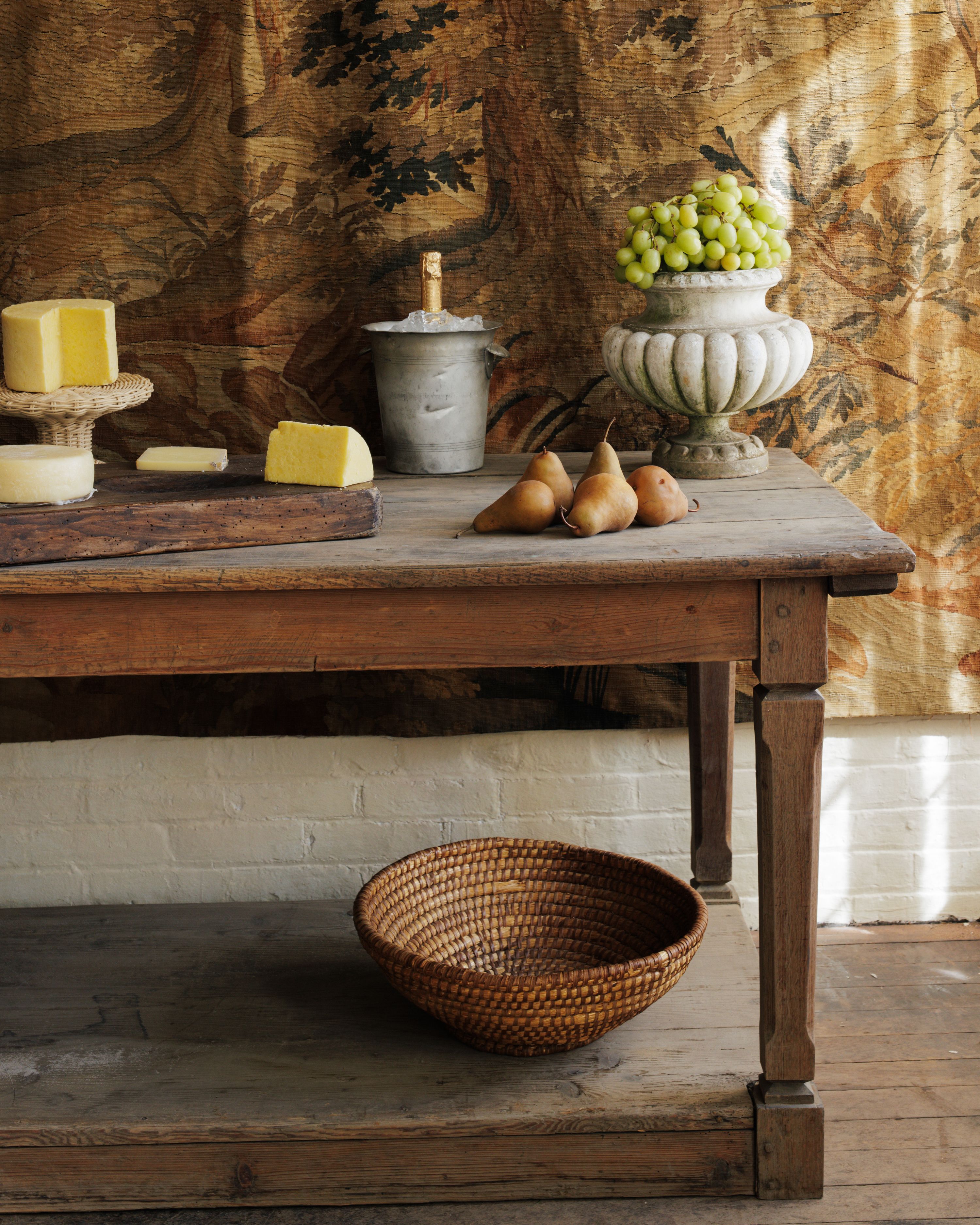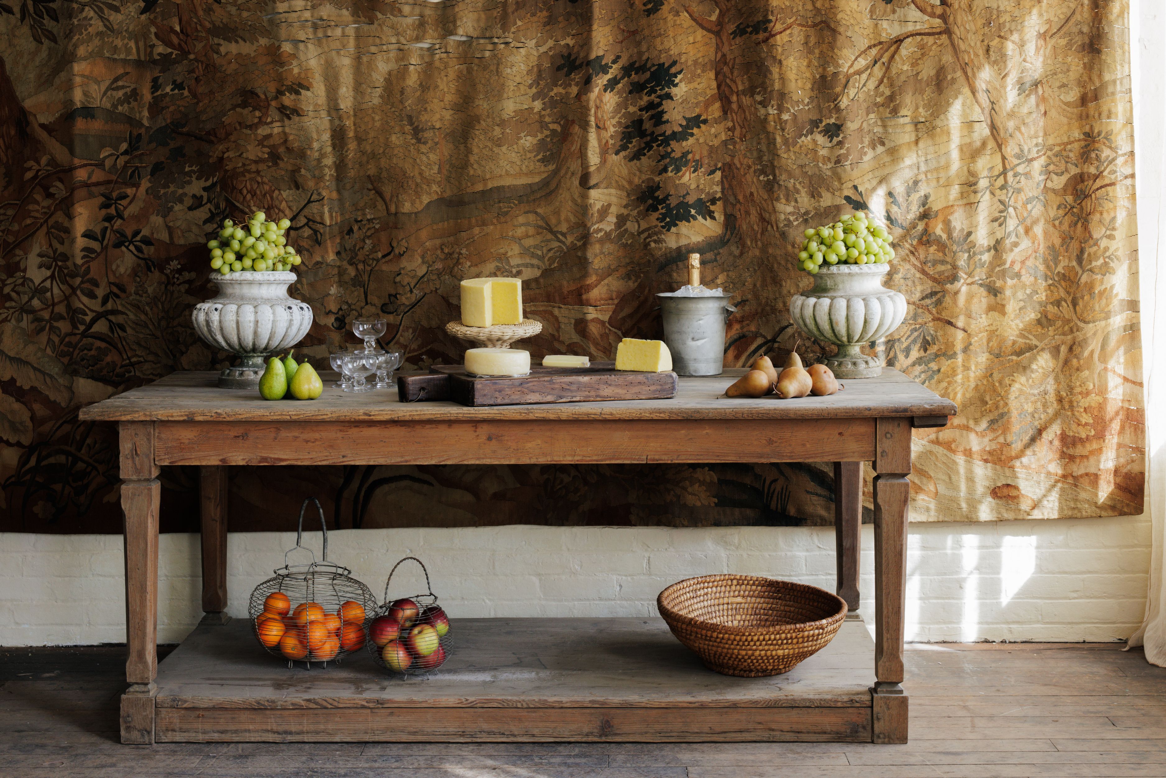 Once used in the dressmaking workshops of Catalonia, Spain, this 19th-century draper’s table has lived a storied life, eventually making its way to Béziers, where we discovered it. Designed with a wide work surface and a unique lower platform, it offers both form and function. Sylvie loves this show stopper as a console table or kitchen table with open storage for pots, pans and dry goods.