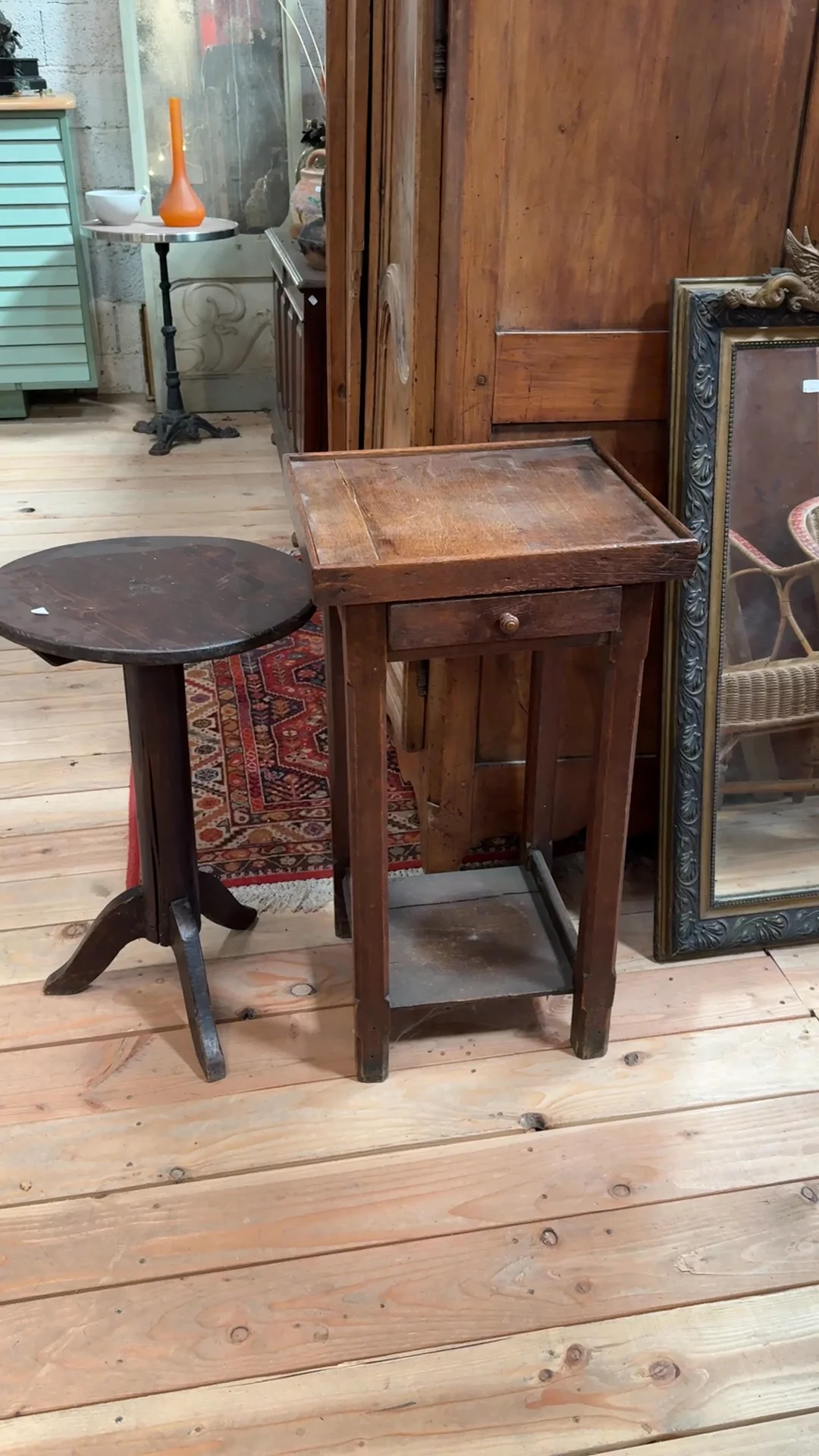 This early 20th-century French tripod table, unearthed in Uzès, is the definition of understated elegance. Crafted from dark wood with a beautifully aged patina. Its versatile design makes it a perfect addition to any corner of your home—whether as a side table, a stand for your favorite vase, or even an impromptu perch for a coffee cup.