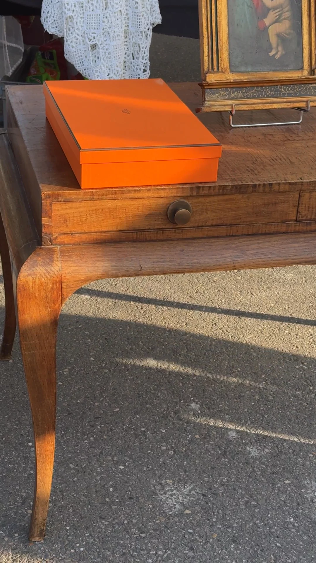 Used in a Parisian perfumery in the 1920s and ’30s, this table carries a quiet elegance that feels entirely effortless. Found in Villeneuve-lès-Avignon, it’s a rare glimpse into a time when beauty was measured in the smallest details. The slender cabriole legs, the rich patina of the wood, the perfectly worn brass drawer pulls—every inch speaks to its refined past. In remarkable condition, it’s just as striking today, whether styled in an entryway, as a writing desk, or left bare to let its history do the talking.
