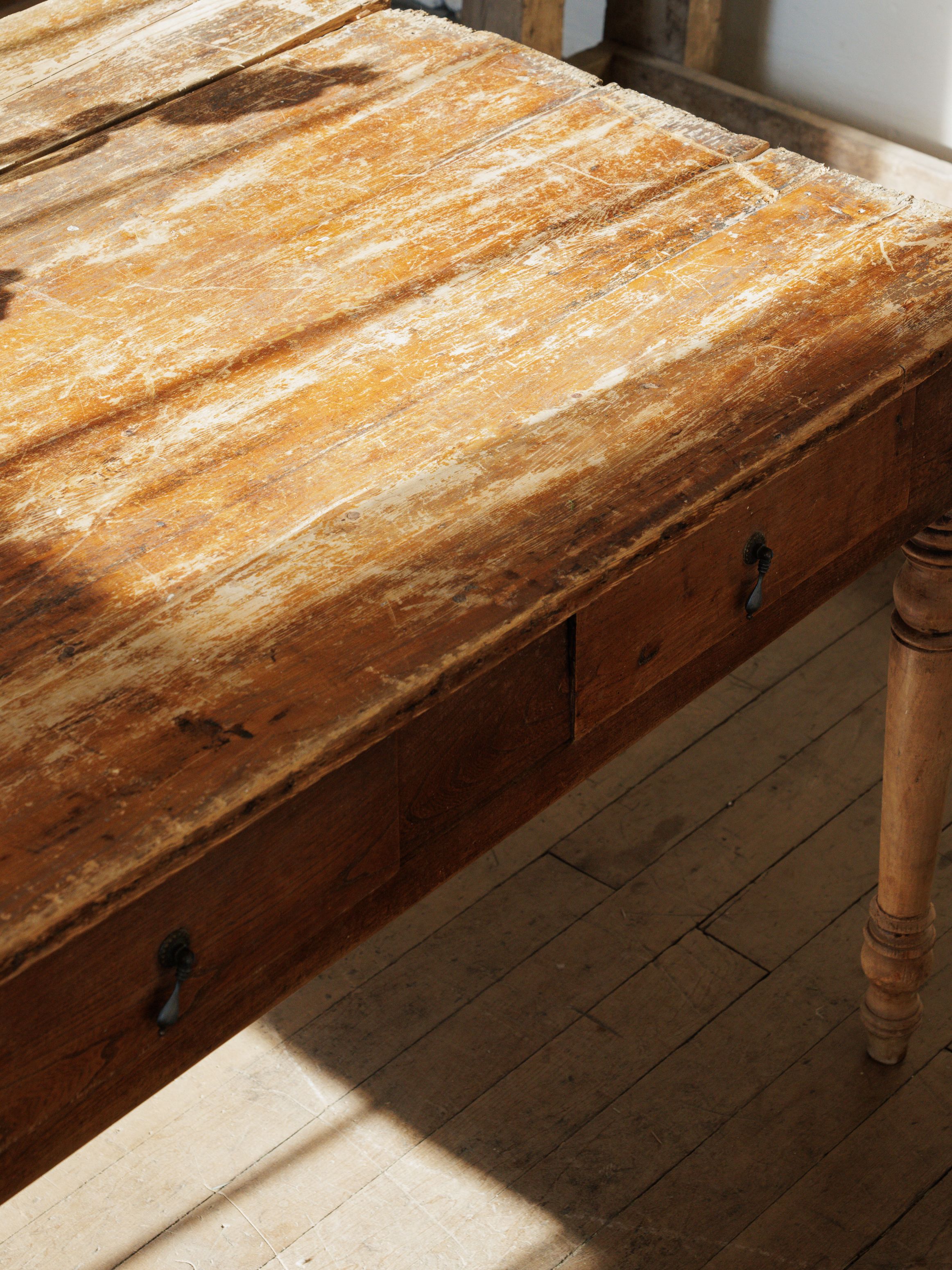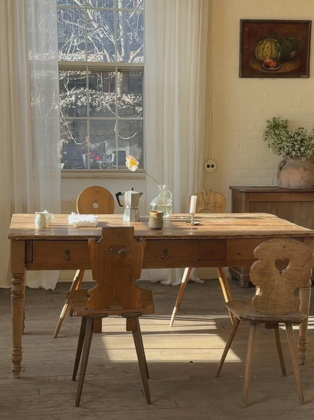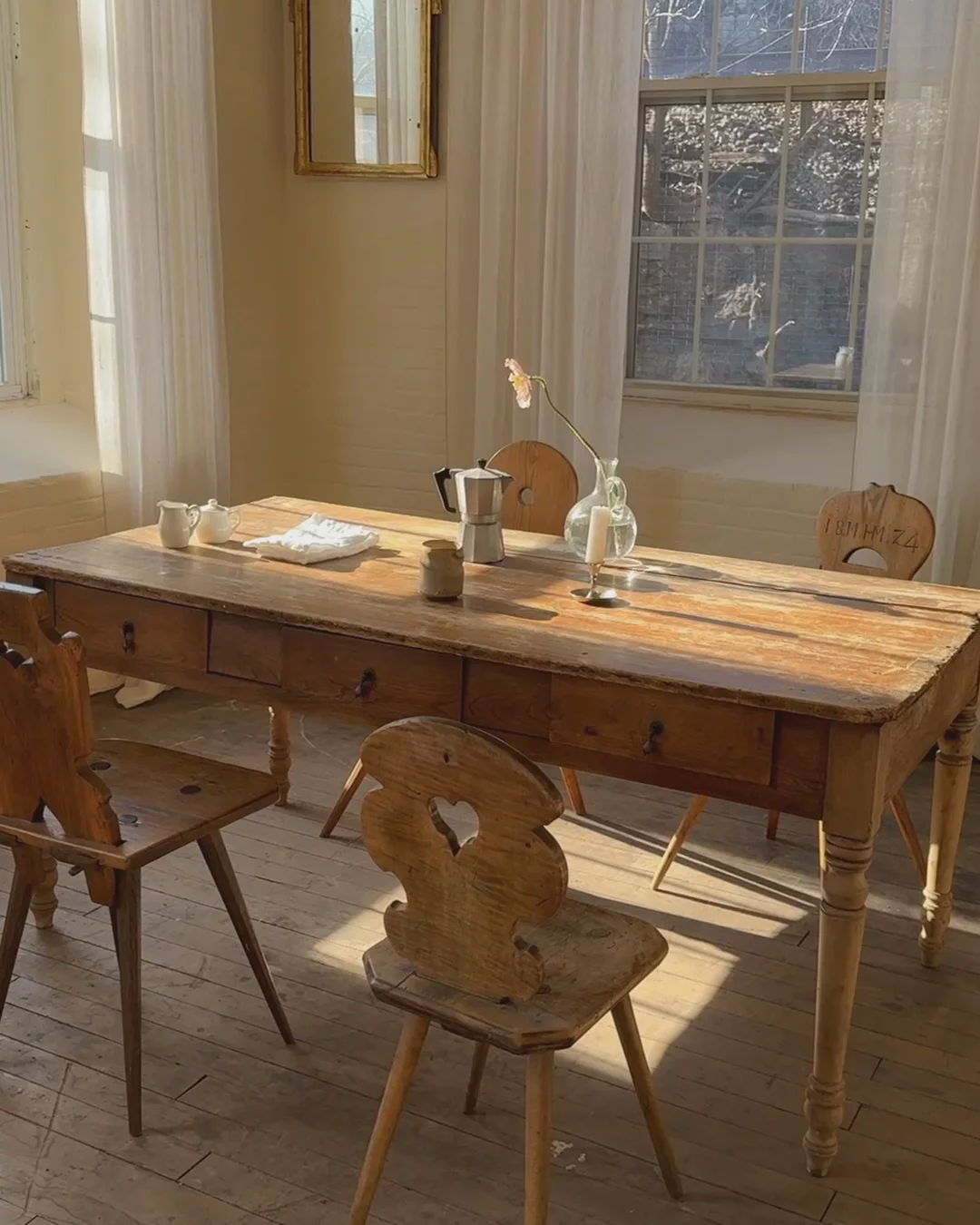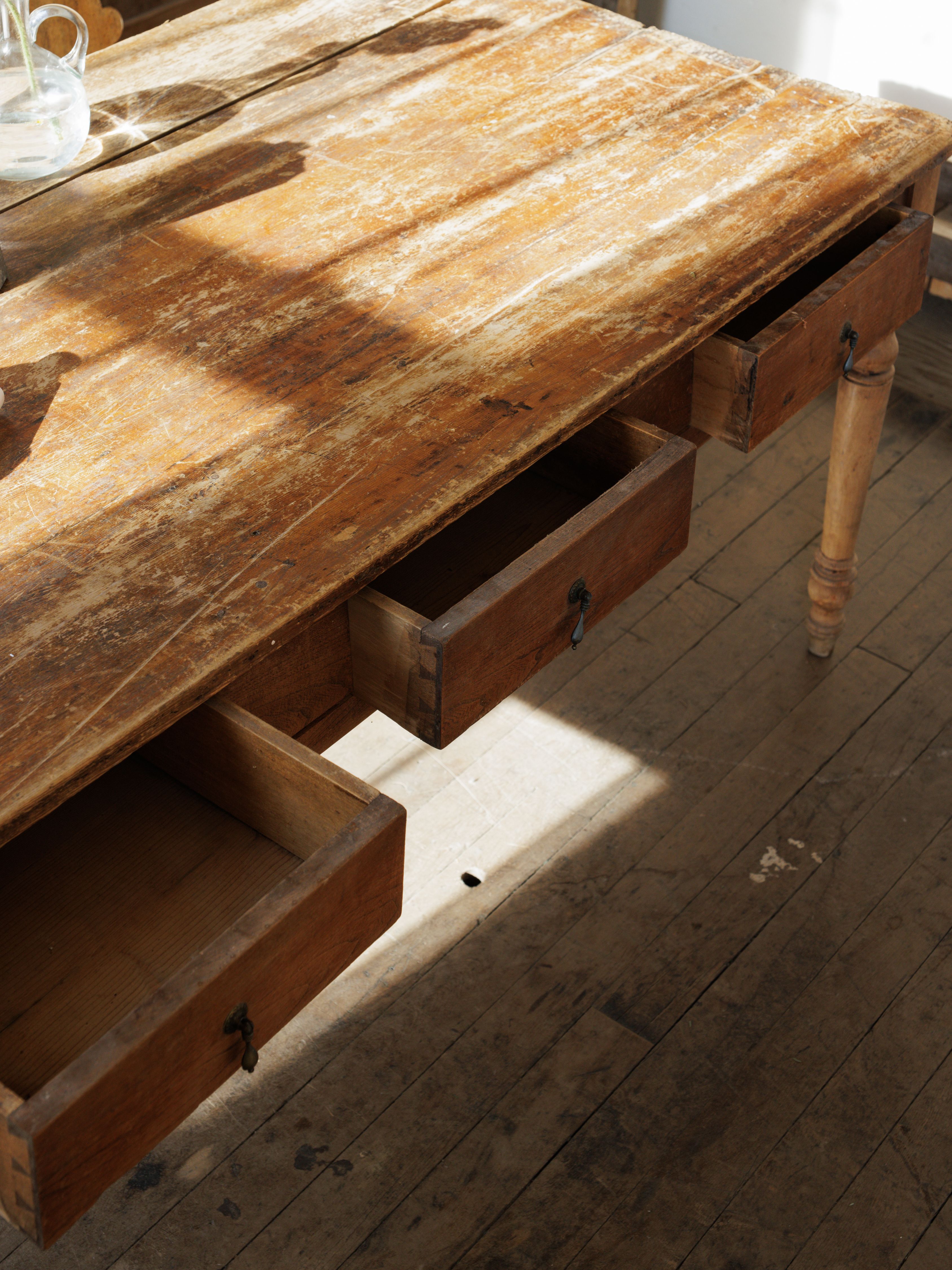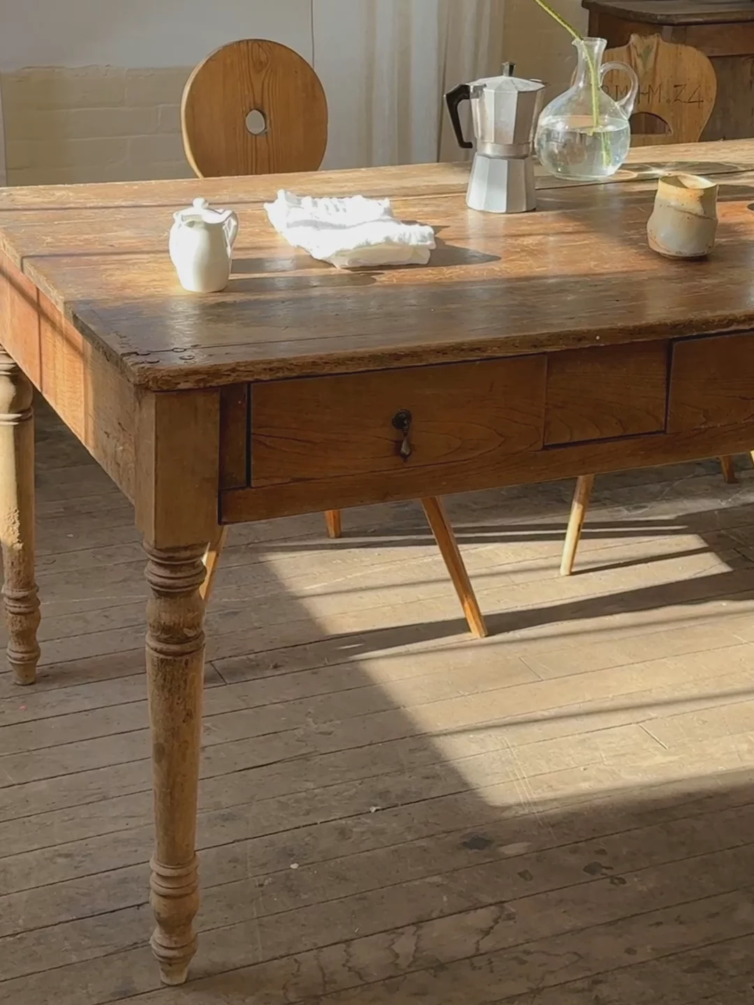 This 19th-century monastery table, discovered in the South of France, is nothing short of a dream. With six drawers (yes, six!) and the kind of patina you just can’t fake, it’s bursting with character. The turned legs, antique hardware, and those perfectly imperfect details make it a true one-of-a-kind find.