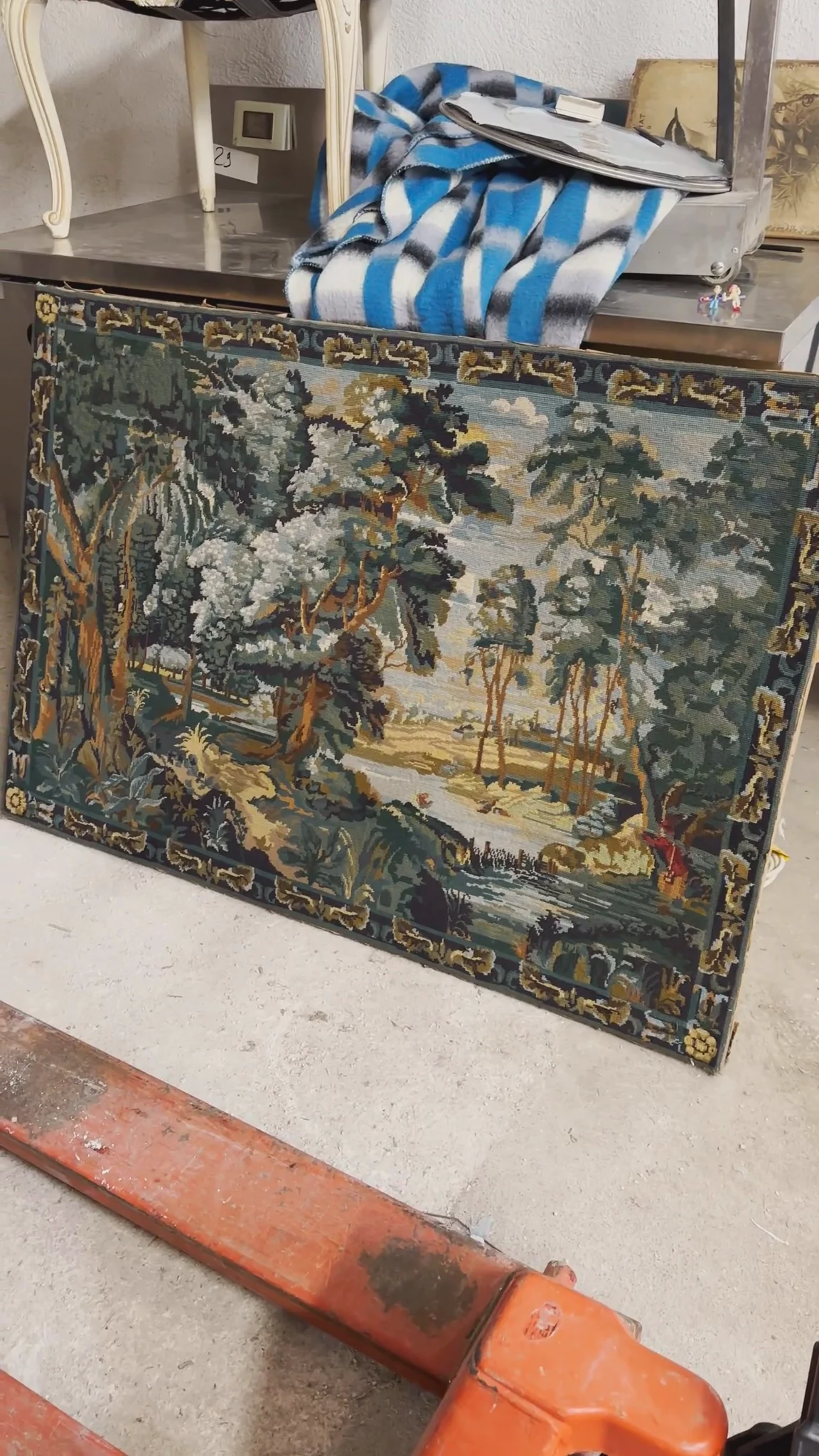 Found in an old warehouse in the bustling street of Marseille, this tapestry is a woven glimpse into a time of noble pursuits and untamed landscapes. Rich in color and depth, this framed tapestry tells a story in every thread - towering trees, a rushing stream, and the quiet drama of the hunt unfolding in the distance. Whether ghung behind your bed or an intimate study, it invites the imagination to wander.